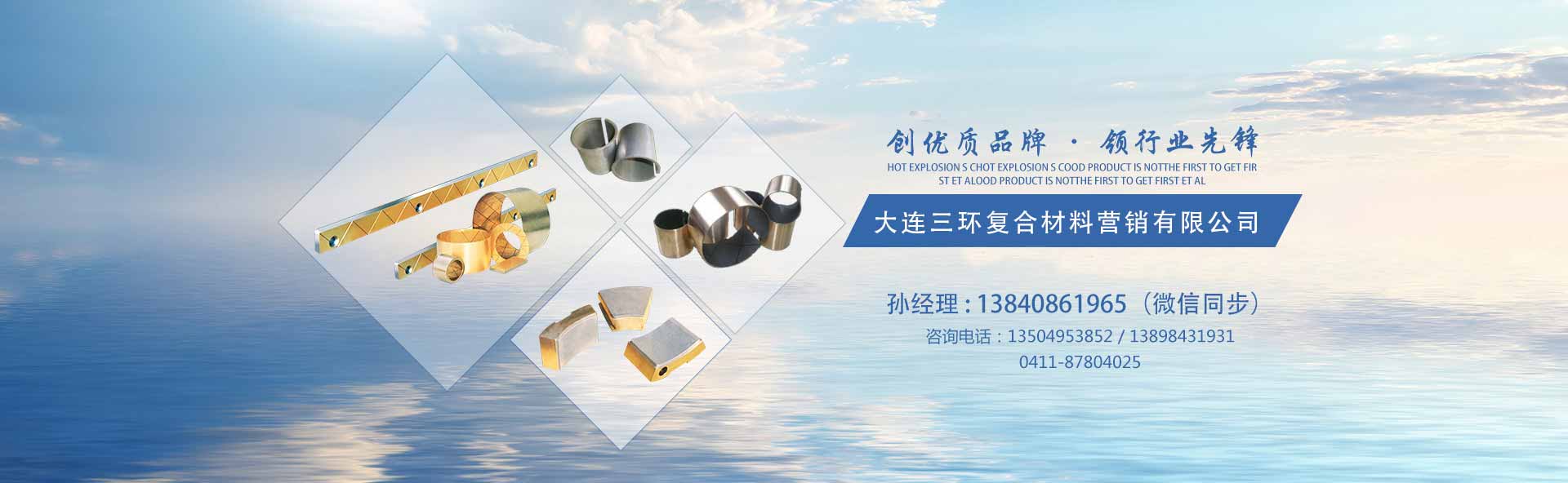 大連三環(huán)復(fù)合材料營銷有限公司成立于1991年,是一家研發(fā)、制造、銷售固體潤滑軸承及塑料—金屬復(fù)合材料滑動(dòng)軸承的公司。 公司坐落在美麗的濱城大連,擁有鋼背復(fù)合材料軸承、自潤滑關(guān)節(jié)軸承、氟塑瓦(彈性金屬塑料瓦)等產(chǎn)品的生產(chǎn)廠,自有檢驗(yàn)試驗(yàn)和生產(chǎn)制造設(shè)